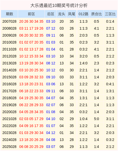 大乐透历年同期奖号分析